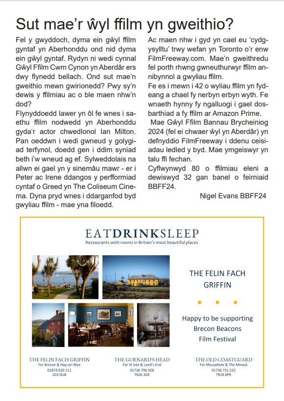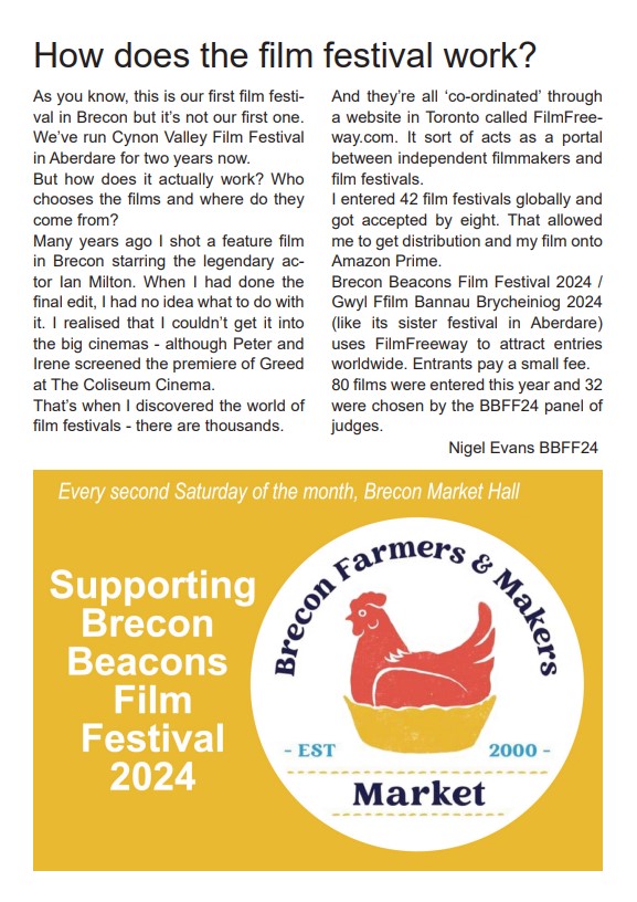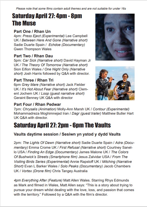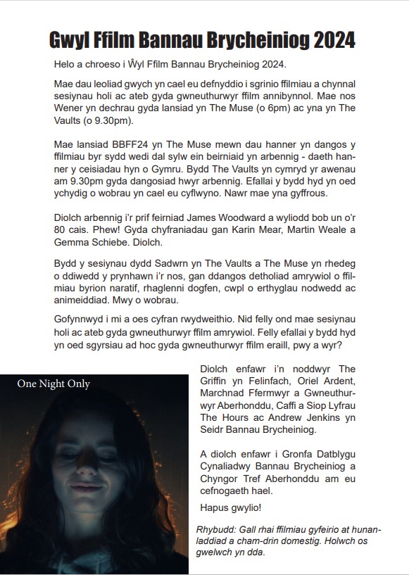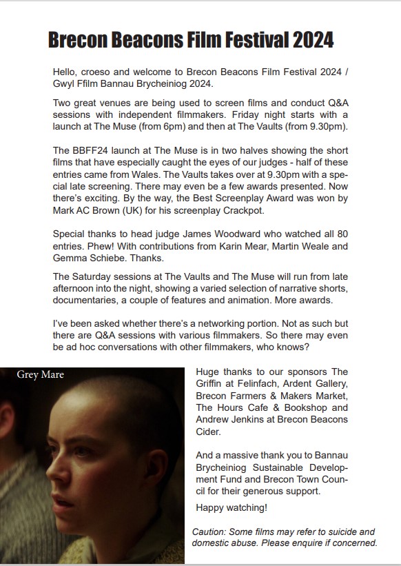 Brecon Beacons Film Festival 2024 / Gŵyl Ffilm Bannau Brycheiniog 2024 takes place from Friday April 26 (launch night) to Saturday April 27 (from 2pm) at The Muse on Glamorgan Street and The Vaults on Market Street. You’ll be able to find out more about the film festival and the running order of films below. Entry is free but space is limited so come early. Follow us on Facebook and keep an eye out for updates.